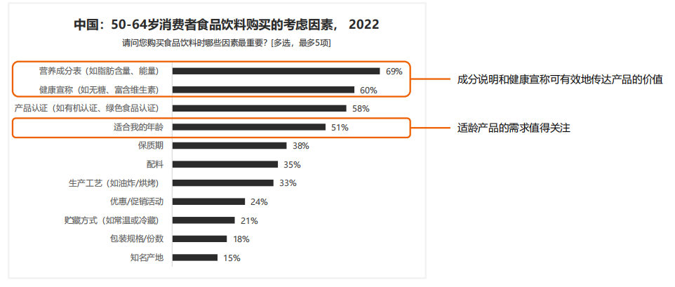 營養成分和健康宣稱是老年消費者的普遍訴求,適齡宣稱成為新的機會點。